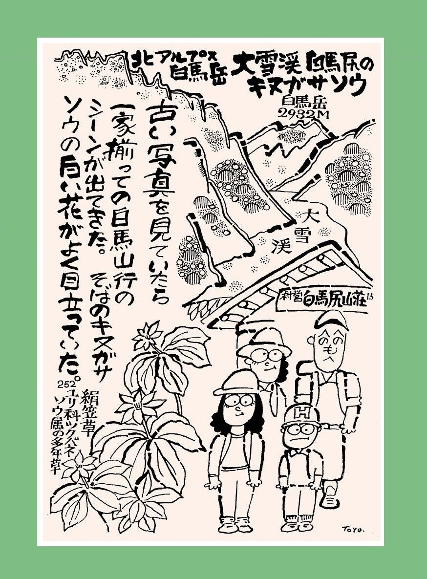 山のまん画ばなし「北ア大雪渓・白馬尻のキヌガサソウ」