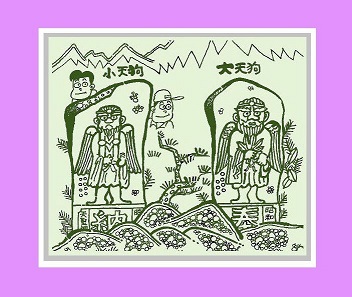 大天狗像の下部には「奉」の文字、小天狗像の下部には「納」の