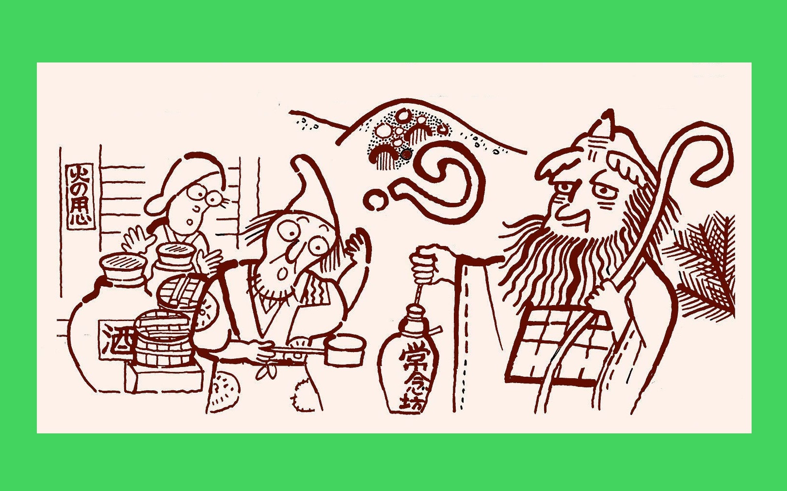 の村に市が立つときまって酒屋に怪しい僧侶がやってきて、5合の