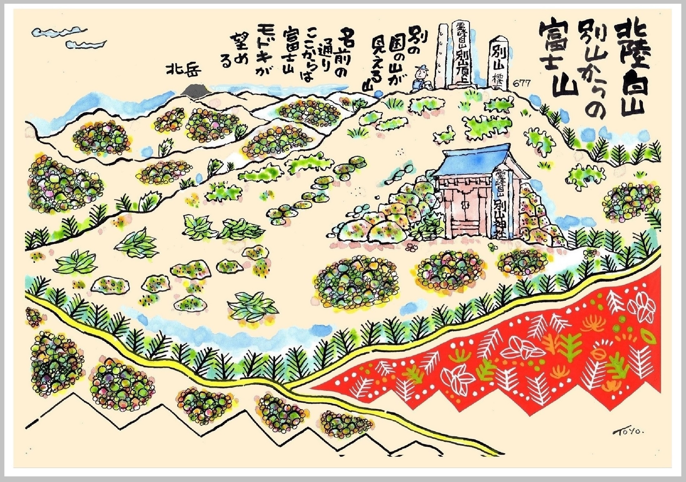 毎月、山旅通信【ひとり画っ展】(イラストと解説文)を郵送しま