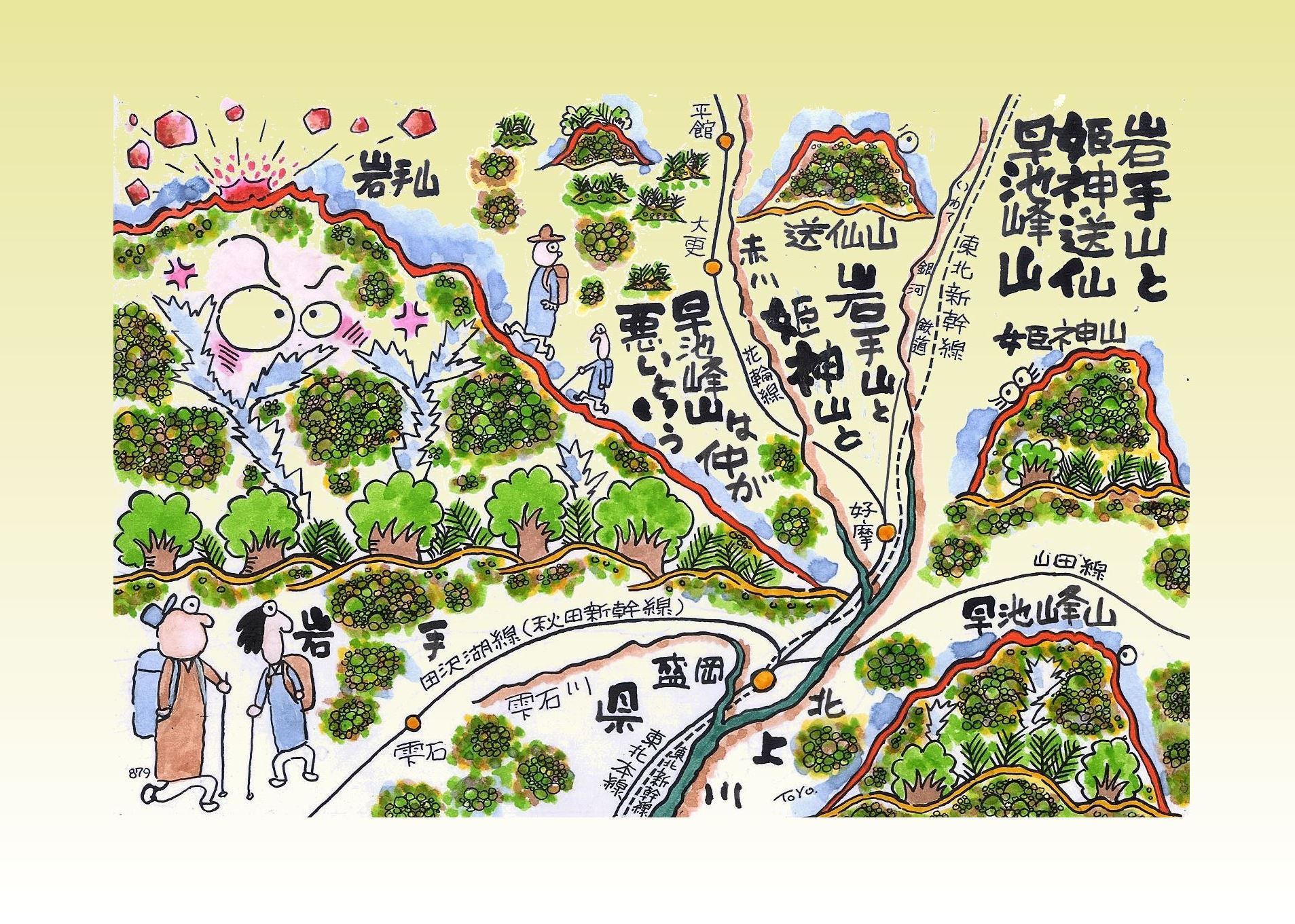 びえています。怒った岩手山は火を噴いて暴れ回り送仙山の頭を吹き飛