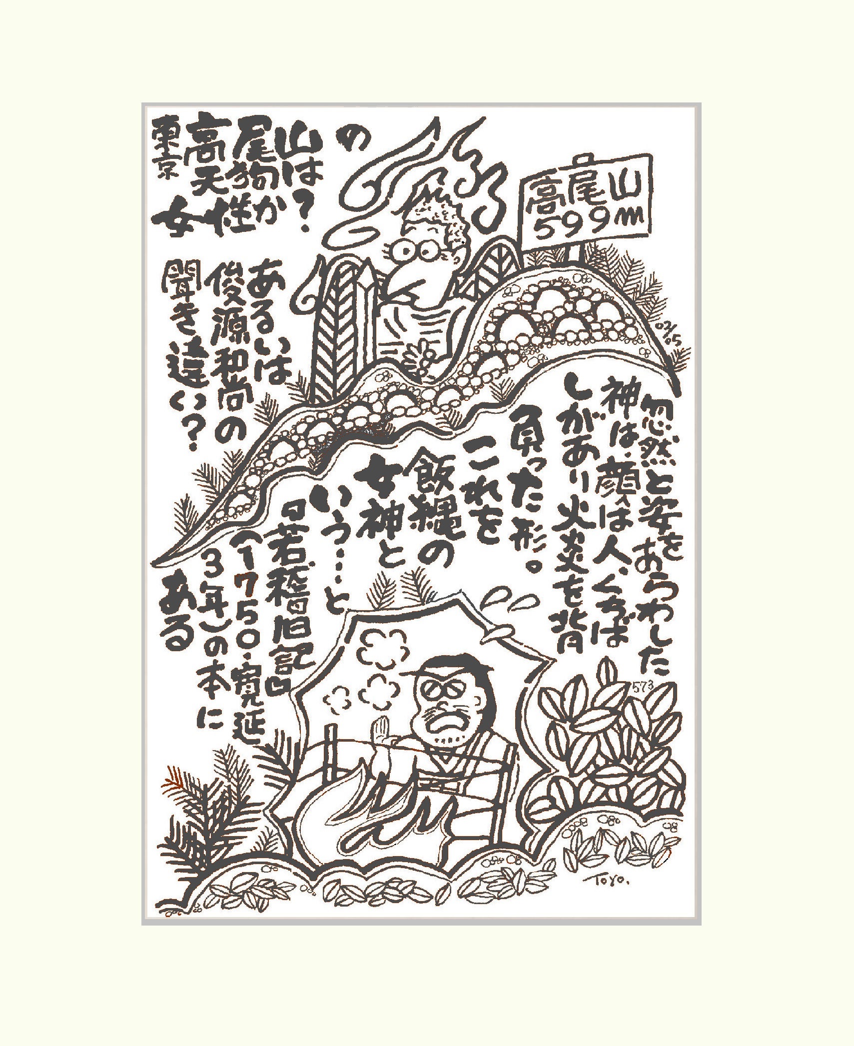 山の伝承ひとり画ってん。こんな話も大まじめ「男か女か、カラス天狗か?高尾山の天狗」
