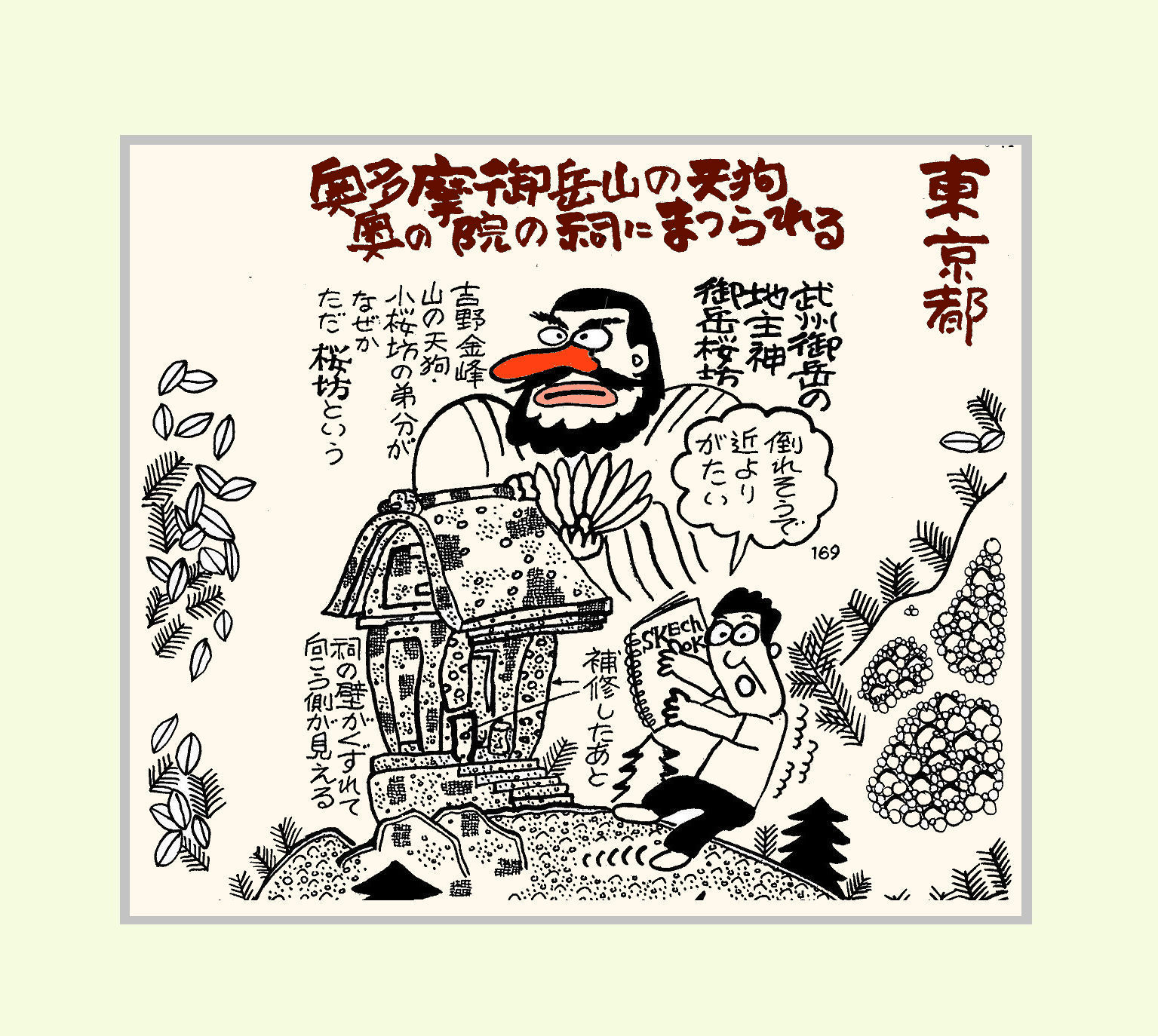 山の民俗伝承ひとり画ってん。こんな話も大まじめ「奥多摩にも大天狗がいます」
